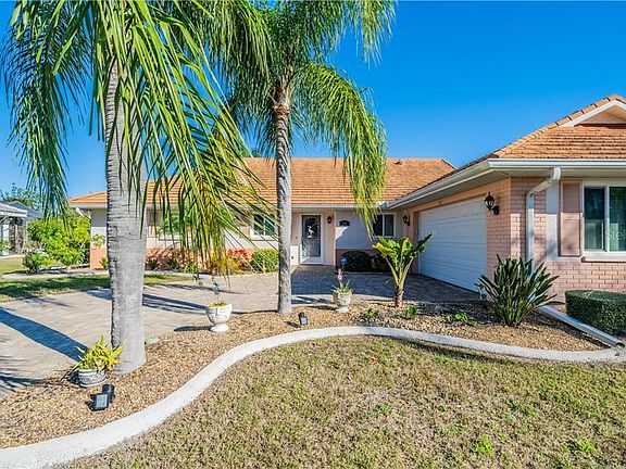 Curb appeal, a great WATER VIEW, and plenty of space - this SPLIT FLOOR PLAN home has all that and more! The foyer welcomes you with a lovely tile mosaic design, coat closet, and through the great room (with volume ceiling!) to the beautiful pond view out back. The great room, currently being used as formal living room and dining room, opens up with sliding glass doors to the HUGE FLORIDA ROOM. The dine-in kitchen features a breakfast bar, large dining area with water view, closet pantry, breakfast bar, stainless fridge, oven/range, exhaust fan, ceiling fan, and sliders to the Florida Room. Off the kitchen is another family room area. There is so much FLEX SPACE in this home! BIG master bedroom features sliders to Florida Room with water view, his/hers closets including a deep walk-in, built-in vanity, en-suite with lots of counter space and shower stall. Second bedroom also boasts a walk-in closet, and the second bath has extra counter space, vanity area, solar tube, and tub/shower. The Florida Room allows you to relax and comfortably enjoy the water view year-round, rain or shine! The indoor utility room is large enough to double as a office/flex space while still housing the washer/dryer, built-in storage, & laundry tub! Even the garage includes storage cabinets and shelves! Sun City Center is a golf-cart friendly 55+ community offering amazing amenities and social clubs. Restaurants, shopping, and health care are all within a golf cart ride. Conveniently located near US-301, US-41, and I75.