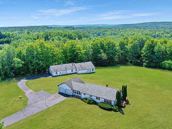 In the heart of Pownal, Maine this home offers 1600 sq ft of living space. Freshly painted and a super bright house with large windows; that allow you to take in the amazing view of mature maple trees and rolling fields. The house is equipment with and on demand generator so your never without power, an onsite dump station for all your RV travels. Oversized super dry basement and extremely well-built construction. The property boasts not one but two large, detached buildings 32'x48' and 40'x44'. Once used for classic cars. The oversized heated buildings can store 15+ cars. The possibilities of these heated buildings are endless. This picturesque house sits on top of the rolling fields surrounded by 6+ acres of fields and woods. Use all 6+ acres or break off some acreage for an additional approved building lot. Enjoy this quiet country living with all the amenities just a short distance away. Freeport main street is 4.9 miles. Portland is less than 30 minutes. Bradbury Mountain State Park is less than ½ mile away.