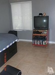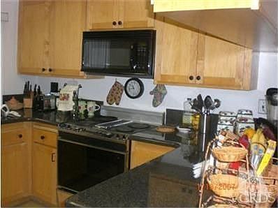 Corner unit shows nicely with granite countertops in kitchen and tile flooring through kitchen, living area and bathrooms.