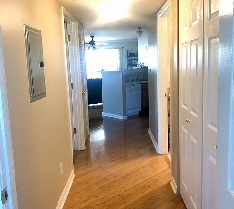 Linoleum in bathroomsIn-unit laundryOak cabinetsWalk-in closetLots of windowsBamboo flooringWide hallways