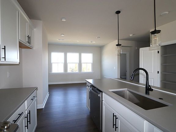 Brand new townhome in Holding Village. Attached 2 car garage, 1st floor guest suite with full bath and built in drop zone. Head up the oak tread staircase to the 2nd floor which features a spacious great room, kitchen with large quartz island and matte black fixtures. There is also a large dining room adjacent to the kitchen. The third floor showcases the primary suite with tiled shower and quartz countertops. In addition there are 2 more bedrooms, full bathroom, and laundry room on the 3rd floor. The community features a 15 acre lake, pool, parks, and trails! A brand new clubhouse and park are starting construction now!