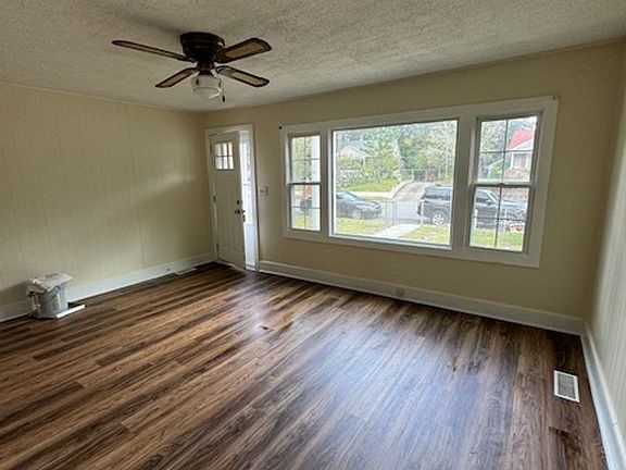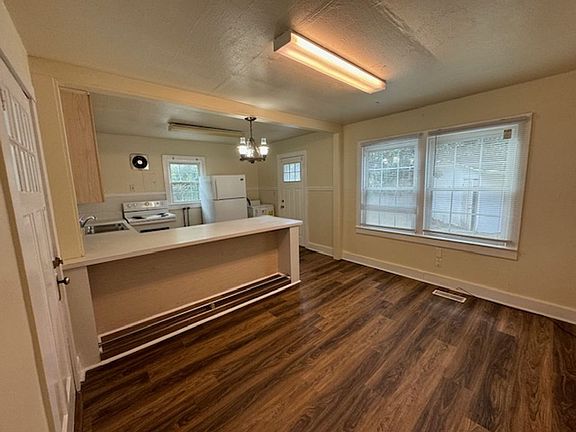Quaint cottage nestled on a large fenced lot. Shed (portable air conditioner in the shed, owner will not repair/replace) and open area for storage. 3 bedrooms, 1 bathroom and an enclosed porch ideal for office or play area. Kitchen spacious with eat in area, washer/dryer hook-ups, large living room, 1000 sq. ft. LPV flooring throughout the home. Freshly painted. Central heat (Gas) and air (electric). NO SMOKING
