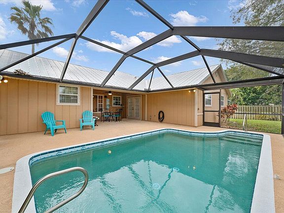 Welcome to this charming residence in the heart of West Melbourne. This 3 bedroom, 2 bathroom home has a thoughtful design with a split floor plan. Tile & laminate throughout. No carpet, making maintenance a breeze! The kitchen opens up to a large family room with double doors leading to the expansive patio. The primary bedroom with walk in closet also opens up to the pool area. The true highlight of this property is the expansive screened-in patio overlooking a large pool. Beautiful yard adorned with tropical palms & fully fenced sanctuary guarantees privacy & security. The 2018 metal roof provides durability & peace of mind for years to come. The absence of an HOA adds flexibility & freedom, allowing you to personalize your space without constraints. Convenience is at your doorstep with proximity to a movie theatre, a variety of restaurants & all the shopping options at Hammock Landing. You are a short drive to beaches, schools, local college campuses and Brevard's ever growing tech companies! This home is the perfect blend of comfort & convenience. Embrace the Florida lifestyle, schedule your showing today!