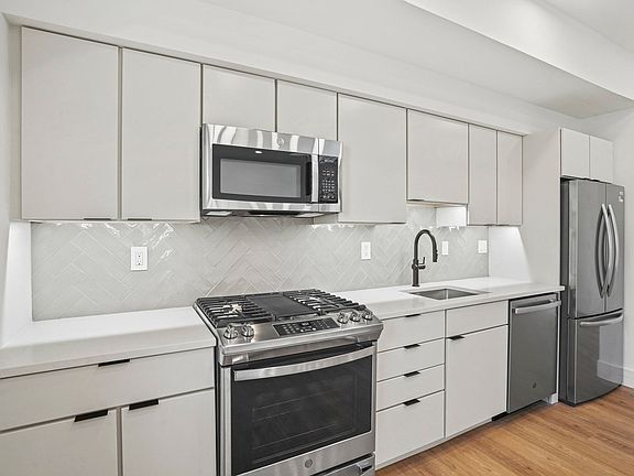 Welcome to Navy Yard's newest community, The Heywood! Our brand new development offers a range of one-bedroom floor plans to suit your needs. Each unit is equipped with luxurious features such as hardwood-style flooring, stainless steel appliances, quartz countertops, building fob entry, full-size walk-in showers, ample natural lighting, and stackable washer/dryers. Unwind on your own private, large-scale roof deck lounge, available exclusively to the top-floor penthouse units.