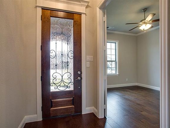 Another well respected custom builder presents beautiful meticulously well built home in Ranger Creek. Beautiful new home with lovely curb appeal & elevation. Coach lights on front porch, pier foundation. Beautiful entrance with barrel ceiling. Built-ins in living room. Built in stainless stove top & ovens and beautiful quartz, higher grade than granite, glass tile back splash kitchen & bathrooms. Kitchen features painted white cabinetry & large wood island. Crown molding and Large utility room. Split bedrooms, beautiful tile with hardwood flooring. Lovely patio with surround sound & wired for TV. Energy Efficient, 16 Seer AC. Well insulated vinyl windows.