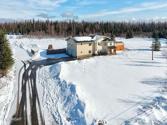 MOUNTAIN VIEW HOME ON 2.5 ACRES! Private, end-of-road location w/asphalt parking lot. 2013 built 2024 sf, 4 bed, 2.5 bath home w/family room. 576 sf garage, Radiant heat, solid surface counters, stainless apps. Suite w/WIC & tile bath w/jetted tub. HUGE yard regraded & reseeded. East acre cleared & mulched. Sauna, chicken coop & fence posts installed. Mosquito Authority paid thru summer 2023.