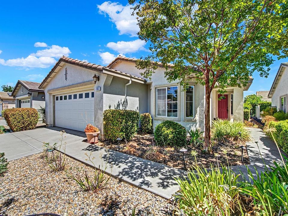 Welcome to your dream home in the picturesque Trilogy, an active 55+ gated community in Rio Vista. This beautifully upgraded 2-bedroom, 2-bathroom residence, built in 2006, offers a serene and luxurious living experience on a quiet street. This home includes a versatile den, perfect for a home office, library, or guest room. Enjoy cooking in the upgraded kitchen featuring elegant maple cabinets, stunning granite countertops, and brand-new stainless steel appliances. The tile flooring adds a touch of sophistication and ease of maintenance. The master bathroom boasts a walk-in closet, providing ample storage and a private retreat for relaxation. Tile flooring throughout most areas ensures a sleek and easy-to-maintain living space. Step outside to your new covered patio, perfect for enjoying a morning coffee or hosting evening gatherings. The garage is equipped with custom cabinets, offering plenty of storage for your tools and belongings. New window coverings ensure your privacy while adding a touch of style to your interiors. There's OWNED solar, you can keep electrical costs low, all summer. With its modern upgrades and inviting ambiance, it's the perfect place to create lasting memories. Don't wait - this one won't last!