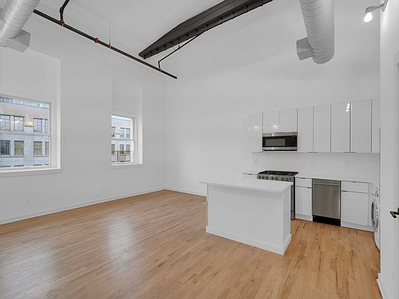 Rarely Available FULLY RENOVATED 1 Bedroom Loft Apartment with Soaring 20' Ceilings! Net Effective Rent Shown, Gross Rent $3000. **Unit Undergoing Full Renovation**. **Net Rent Advertised** Available for April 1 - April 15th Move in Date! BRAND NEW Fully Renovated 1 Bedroom Apartment! Walk into your beautiful renovated kitchen with custom breakfast bar island with plenty of Storage. All high end Custom Countertops and Blomberg Stainless Steel Appliances. West Facing Unit with oversized windows for lots of natural lighting. Bedroom can fit a King Size Bed and more, a very rare find for Hoboken! Hardwood floors throughout. Pets Welcome for No Extra Fees! The building has features a Brand New Virtual Doorman System that connects to your cell phone, elevator and Laundry on Site. Moments away from the Lightrail station for easy commuting to the Path Train Station. Parking available on site for $225/Month. Tenant Pays Utilities.