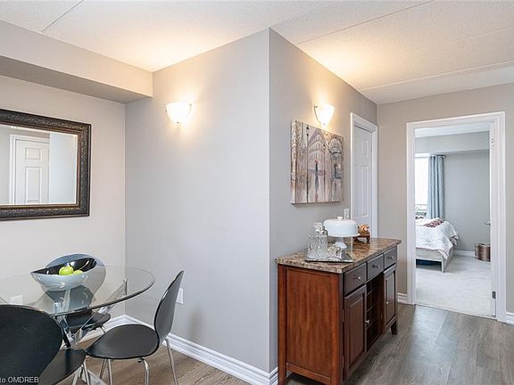 Sit on the balcony, sip on your favourite drink & admire the sunset on the Escarpment! A commuter's dream, this 2+den condo has easy access to highways 401/407 and GO station. A short walk takes you to plenty of restaurants, shops, community & arts centre & parks. Enjoy amenities such as a rooftop terrace, party room, guest suite [for visitors], 1 parking spot and locker. Boasting on trend white kitchen, ultra durable vinyl flooring, beautiful neutral palette, upgraded lighting, upgraded FULL sized washer/dryer and a private floor plan [bedrooms on opposite sides of the unit] along with oversized windows that flood the space with a bounty of natural sunlight. The private primary bedroom has its own ensuite and walk-in closet. With all of this, what more could you be looking for?!