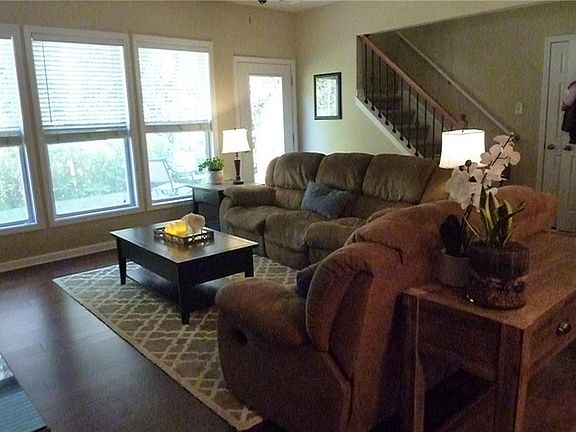 A Fabulous Home! Wonderful Floor Plan! Beautiful New Hardwoods Thru-out Main Level and New Carpet Upstairs; Granite in Kitchen; Rear Stairs; Large Living/Great Room with Fireplace! Great Size Master with Vaulted Ceiling and HUGE Walk-In Closet! PLUS a Large Loft/Playroom...Use Your Imagination! Two Zones HVAC (one Unit only 3 years old)! Thermal Pane Windows! Privately Backups to Woods; Faces West so no Sun on your Cook out/Patio!