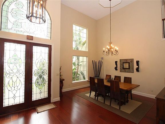 - Interior Features: Cathedral Ceiling(s), Ceiling Fans(s), High Ceiling(s), Master Bedroom Downstairs, Split Bedroom, Vaulted Ceiling(s), Crown Molding, Walk-In Closet(s), Window Treatments, Open Floorplan, Solid Wood Cabinets, Eating Space In Kitchen, Kitchen/Family Room Combo, Built in Features, Thermostat