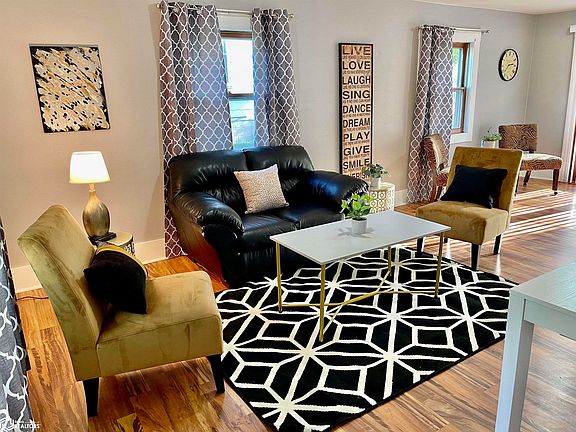 This 3 bedroom, 2 bathroom home offers spacious living areas and a deck. Laminate wood flooring throughout the home and white doors and trim for a fresh and modern feel. As you enter the home the living room is to the left as well as the staircase for the bedrooms. Main floor also has an updated full Bathroom, large kitchen and dining area with a built in Hutch. Living room and kitchen have doors that lead to the deck ready for summer grilling. This home has a deep 2 stall garage attached to the house and has a separate shop or main cave area. Lower level of this home has a 3/4s bath and a family room. A huge laundry room is also available in the Lower level with a walk out door for the back yard.