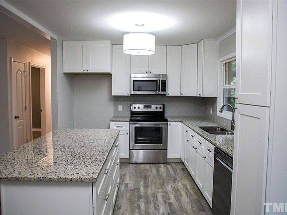 Adorable 4 bedroom, 2 bath home in the heart of Mebane features new roof, new windows, new doors, new HVAC, new LVP flooring throughout the home, new soft close cabinetry, granite countertops, huge island, new stainless-steel Whirlpool appliances, Master bedroom with dual vanities, soaking tub, linen closet and tile shower. Hall bath with dual vanities. 30x10 party deck, and a fenced back yard with gate that opens into Mebane???s newest pocket park.