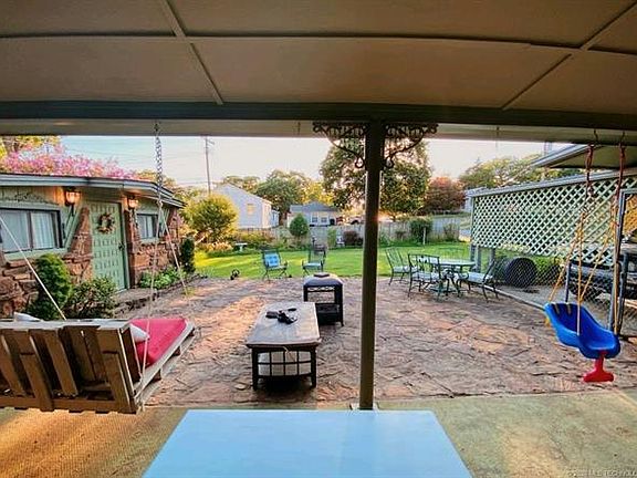 Must see this 2 bed/1.5 bath on corner lot in Sand Springs. Good size corner lot with fenced backyard with covered patio. Large storage building for extra storage. Recent updates including new carpet. Great landscaping and appliances stay in this 1186 sq ft home.
