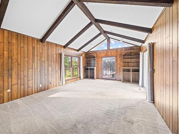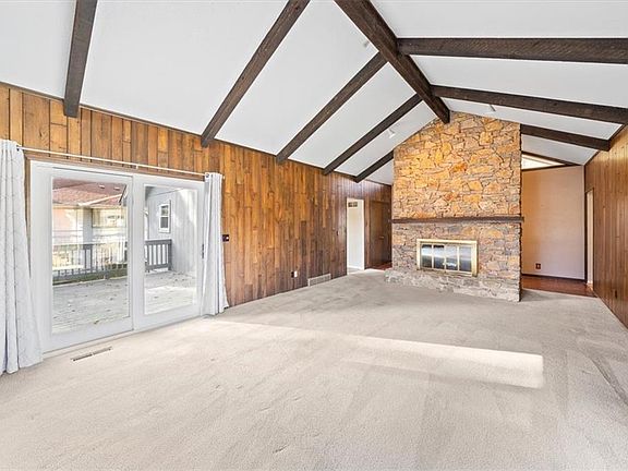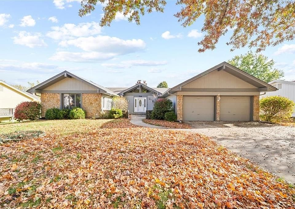 True ranch home with mature trees on a quiet cul-de-sac.  Primary bedroom with on suite bath on the main floor. 2 more bedrooms & full bath on main floor as well.  Great room features walk out to deck, large windows, built-ins and floor to ceiling stunning stacked stone fireplace!  Eat-in kitchen walks out to deck and garage.  Lower level features another fireplace in family room along w/snack area & walk-out to patio. Large utility room with closet to hang freshly laundered clothing & enough space for a craft table or study area. Also has walk-out access to separate patio below the deck. 4th bedroom has lots of square footage & large closet along with a separate locking closet. 3rd bathroom w/shower is located next to workshop/storage area.  Pegboard & sturdy built in wooden shelving & work benches for the handy person!  All in all, this home has tons of charm & room to make it your own!  Community pool is within walking distance.  All schoos, taxes, measurements & numbers to be verified by buyers &/or buyer's agent.