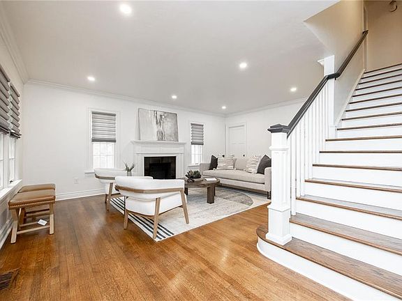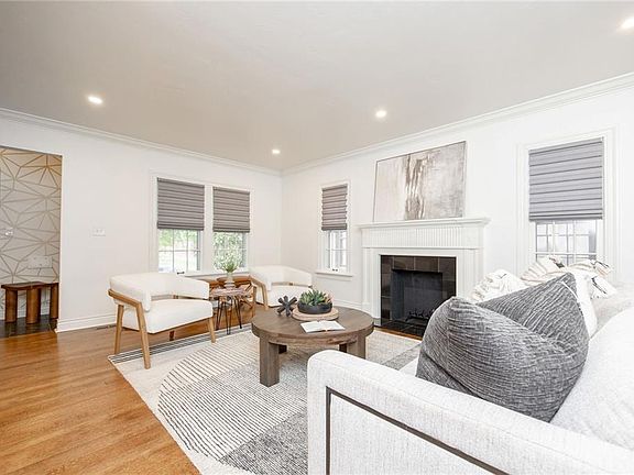 Charming updated home in Crown Heights. This functional floor plan has an open concept with beautiful hardwood floors. Living, Kitchen and dining all flow together perfectly. Kitchen has a great island with a gas range and microwave built in. The bar has plenty of storage, perfect for all your entertaining needs. Laundry room is just off the living room with views of the backyard. Primary bedroom is on the main floor with walk in closet and spacious bathroom fully equipped with free standing soaker tub and shower. Powder bath on the main floor as well. Upstairs has two bedrooms that both have plenty of space and great closets. The second bedroom has a hidden door that leads to the perfect bonus/play room. Detached two car garage. Off the garage is a great space for a home office and a half bath. Plenty of backyard, gorgeous mature trees. This home is a must see!