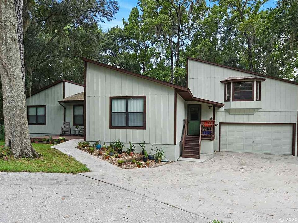 This spacious 4 Bed, 3 Bath home in the Hamilton Heights neighborhood sits on a 0.44 acre wooded lot with a large fenced-in backyard. Thoughtful updates include all tile floors, custom wood cabinets, new windows, and newly-built porches. A breezy kitchen gives you plenty of room to prepare meals or gather with family, and the connected breakfast room is perfect for early morning routines or securing a quiet spot to work-from-home. The vaulted ceiling and natural lighting in the living room offers a grandeur view of the enormous wooded backyard. Two of the four bedrooms are master suites, presenting the option of a lovely guest space or a room upgrade for one of your children. In the upstairs master bathroom, a walk-in shower and separate, jetted tub provide you with space to relax and unwind after a long day. Each bedroom boasts large closets, and two of the bedrooms have sliding glass door access to the backyard. Outside, the multi-level porch provides a fantastic place to enjoy breezy afternoons, weekend cookouts, or family gatherings. This house is on a cul-de-sac and is only a short distance away from the mall, Santa Fe College, the University of Florida and Shands, and so much more of the City of Gainesville.