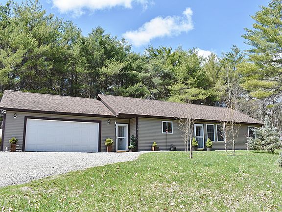 Convenient one floor living with this beautiful 3 bedroom, 2 bath ranch. The lovely landscaped lot is private, with a winding driveway off the road. Great mud room/entry connects the garage to the open concept kitchen, dining and living rooms. Kitchen is fully applianced and features a large island and a pantry. Pretty master bedroom has an en-suite bath. Check out the light fixtures!