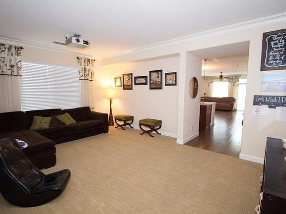 Open House 4/8 1-4pm Incredible opportunity. Beautiful home plus a fully paid for solar system. This home was the model home for this subdivision. 4 bedroom 2 bath with beautiful upgrades like wood laminate floors, upgraded carpet, designer tile back splashes & much more. Sellers created a media room with projector & screen for your family movie nights. Home has a large great room with kitchen, dining & family rm. Enjoy the fireplace, built-in book cases & 2 options for TV locations. Kitchen has rich colored cabinets, corrian counter tops with double sink + additional sink in island. Pantry & breakfast bar complete the family setting. 3 beautifully decorated bed rm's plus lg master with French doors to backyard & 2 master closets. Master bath has oversized tile shower + 2 sink vanity. The hall bath includes custom sinks w/ tile back splashes & tub shower combo. Lg backyard w/ grass to play, cement patio w/ with gazebo + side fenced yard for garden w/ storage shed. 3 car garage & SOLAR!