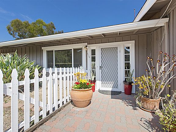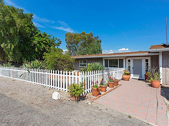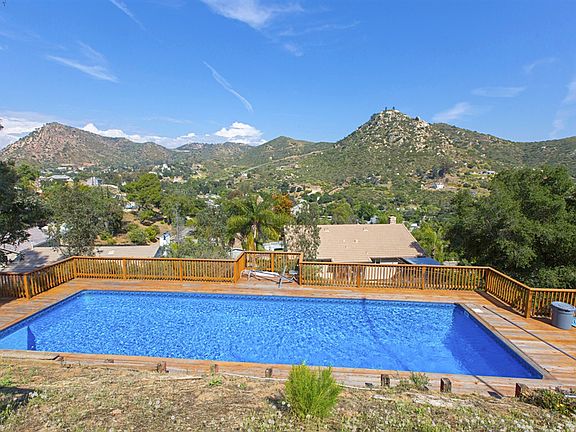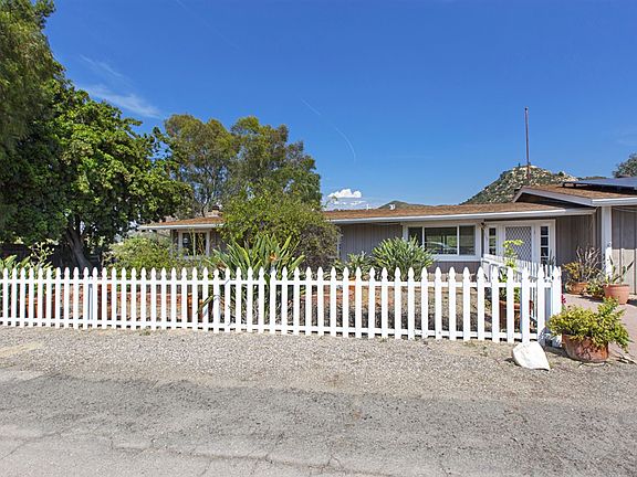 Upgraded Ranch Style 3 Bedroom, 2.5 Bath Home with almost acre located in Harbison Canyon next to Alpine on a quiet secluded street. The front yard has a charming white picket fence and water wise mature landscaping. The Home features include an open spacious floor plan, wood ceilings lined by wood beams and tiled flooring in main living areas of home, dual pane windows/sliders, FAU & AC, 20x16 Family Room which is open to the kitchen and is complete with a beautiful rock surround gas burning fireplace and large slider to backyard patio, dining room with built-in desk area, ceiling fans in all bedrooms, tile flooring in bathrooms, breathtaking views from each bedroom, some faux wood blinds, laundry closet, a solar system where you pay just for electricity used and views from every room. The amazing Kitchen amenities include an oversized breakfast bar, tiled counters & backsplash, 6 burner stove with convertible griddle, mostly stainless steal appliances, pull out pot & pans drawers, tons of deep cabinets, single bowl farmhouse stainless steel sink, a large garden window and a walk-in pantry. When entering the Master Suite through its double doors you cannot help but notice the breathtaking views, wood burning fireplace, a French door to the backyard patio, walk-in closet, and open bath. The Master Bath has dual sinks, flooring and a custom two shower head stall and is outlined with lovely Mexican ceramic tiles with decorative tile inlays. See Supplement The 2 Car attac