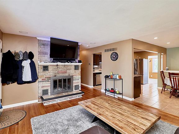 WELCOME HOME! Updated RANCH home sits on almost half acre park-like level yard and features 2090 SF of total living area! Open Floor plan with beautiful hardwood floors throughout. Large updated kitchen and breakfast room with stainless appliances, gas range, extensive cabinet space, custom back-splash and tons of counter space! Living room features brick flanked wood burning fireplace. Bonus sun porch area off kitchen! Walk-out lower level is professionally finished with custom bar area, large recreation room, family room as well as 2nd gas fireplace. Extra bonus room in lower level is perfect for office or craft room. Lower level also features another updated full bath with extra large custom tiled shower. Large deck areas to enjoy nature and sit back and relax! Oversized 2 car garage(27x28). Level yard is partially fenced. Additional Rooms: Sun Room
