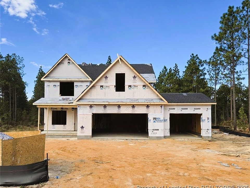 Ben Stout Construction proudly presents the Williams Plan in Kingsbury Ridge. This is North Fayetteville's premier gated community. The home features a 3-stall garage and a first floor primary suite. It sits on 1.1 acres, making it an impressive new home. Upon entering, you step into a foyer that flows into the formal dining room, which opens to the designer kitchen with a large island, pantry, and breakfast nook. Adjacent to the kitchen, the large family room features a fireplace and leads to a covered patio overlooking your spacious yard. The first-floor primary suite is an elegant retreat, complete with a garden tub, separate shower, dual sinks, and a walk-in closet. For convenience, the laundry area and a half bath are also located on the main floor. Upstairs, three bedrooms await: two share a jack-and-jill bath, and each has a walk-in closet. The third bedroom is extra spacious, with access to an additional full bathroom. The large media room upstairs offers the perfect spot for family game night or a quiet study. A large unfinished area provides ample storage. This home gives you everything you could want, just minutes from shopping and schools, with easy access to Fort Bragg and Fayetteville. Perfectly positioned for your lifestyle, completion is expected in January 2026. Welcome home!