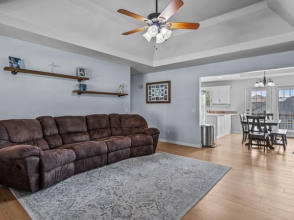 Welcome to this RARE home in Nixa with a walkout basement under 350,000! This 4 bedroom 3 bathroom home offers a living room with trey ceilings and flows right into the kitchen/dining room area. The kitchen is tons of natural light and tons of cabinet storage. You can walk right out to your deck from the dining room area and the deck has stairs that go down to the yard. The primary bedroom is spacious and the primary en suite bathroom has a an updated walk in tiled shower, double vanity, a makeup seating area and a good size closet space with some built in shelving. There also two other bedrooms on the opposite side of the home with a full bathroom in the hallway. The basement is HUGE with a full bedroom and full bathroom. You also have a storage area in the basement. Walk right out to your covered patio and would be a great entertainment space! NEW ROOF! Come check it out before its gone!