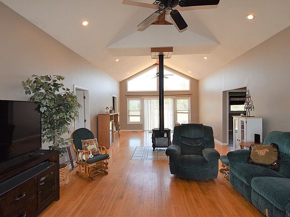 Very private lodge perched on a hilltop with just over 5 acres of land. Great for your horse lover! Has an open barn, electric high tensile fencing, 24x35 detached garage. The home features a huge great room with vaulted ceilings and a wood stove, the kitchen has shaker style cabinetry, granite counters and tile flooring, The deck wraps around the back for amazing views! New siding and windows