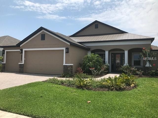 BRAND NEW CONSTRUCTION- Magnolia MODEL HOME-OFFERING LEASBACK! is BUILT BY SAM RODGERS WITH pure elegance from the moment you pull up to the Brick Paved Driveway you will see the rich details-INCLUDING INPACT LOW e-VINYL WINDOWS and GLASS FRONT DOOR! Gourmet Kitchen, offers Stainless Steel Convection Wall Oven, Gas Cook Top, with Chef's Hood Vent, Microwave and Deluxe Refrigerator. Kitchen & Bath Cabinets are solid wood cabinets, that are dove tailed and are soft close!- CAMBRIA QUARTZ Countertops thru out with PORCELAIN TILE FLOORING, to upgraded LIGHTING and 12' CEILINGS WITH CUSTOM TRIM THRU OUT ENTIRE HOME! Oversize lanai with POOL & Outdoor gas Kitchen is perfect for all your entertaining needs! The OPEN FLOOR PLAN looks out past the great room to the beautiful lanai, with Bird Sanctuary PRESERVE VIEWS.The Master Suite is grand and elegant leading to the master bath with double vanities and large walk in shower! The 2nd & 3rd Bedrooms share a bath in between with a bathtub and tiled shower wall up to ceiling. This custom home offers modern colors that are carried throughout the home and makes it feel light, bright and open. Grey Hawk Landing is a gated community includes two community pools, fitness center, tennis courts , bocce ball courts, playground, basketball courts, soccer field, baseball field and football field. Top A-Rated Schools! Make this home yours today! The sale price of furniture is $78,591 which would be on a bill of sale. Total price including furnishings $643,904