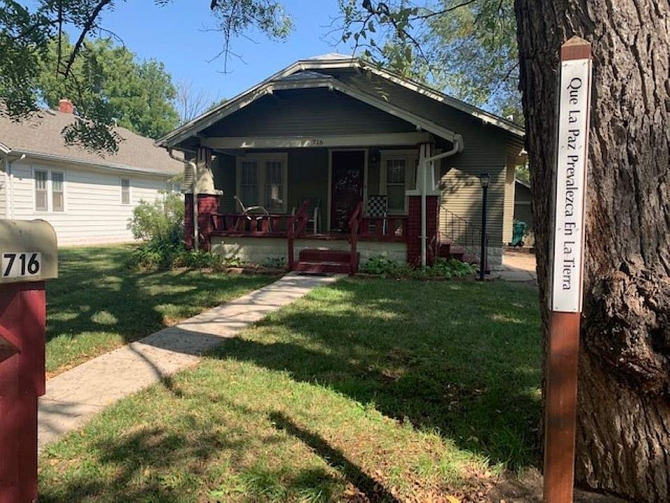 Home is currently rented for $700 per month - on month-to-month. Split bedroom situation. Lovely front porch. Treed lot with yard on east. Some TLC needed for your decor. Large living room with lots of windows.