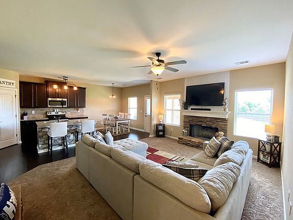 Welcome home to this beautiful 2 story craftsman style home built in 2017 and gently used. 4 bedrooms & 2.5 baths with Ownerâs Suite on the main. 9â smooth ceilings on the main floor. Foyer entrance has hardwood floors, access to the guest half bath and stairs have wrought iron balusters. Family room has a view of the kitchen with a wood burning stone fireplace & access to a covered back patio. The entertainerâs kitchen is open styled with hardwood floors, granite countertops, tiled backsplash, pantry, stainless steel appliances, eat-in area and island with bar seating. The Ownerâs Suite and bathroom are on the main. Ownerâs bath has tiled floors, an extended tiled shower, linen closet, toilet room, double vanity with granite countertop and walk-in closet. Full sized laundry room on the main with tiled floor. Upstairs - 3 sizable secondary bedrooms & secondary bathroom with tiled floors and granite countertop. Exterior - the covered front door entry has an area for seating. Covered back patio for entertaining with tv hookup that overlooks the mostly level backyard. Cement siding & 2 car garage. Serviced by Jackson County Schools, Gum Springs Elementary, West Jackson Middle & Jackson High. Neighborhood has street lights, underground utilities & sidewalks.