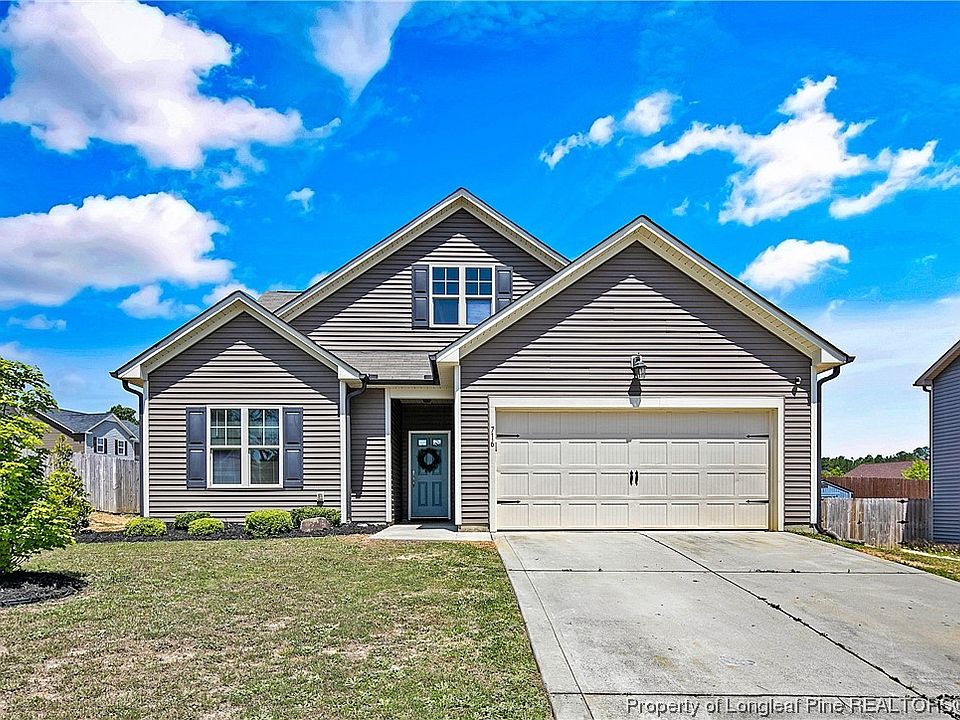 This beautiful home features 3 spacious bedrooms, 2 bathrooms, a 2 car garage, and a fenced in backyard. The open concept kitchen boasts granite countertops, SS appliances, a pantry closet, lots of cabinet space, and a counter height area perfect for some bar stools. The open concept living room and dining room tie in wonderfully with the kitchen and offer plenty of space for entertaining. The primary bedroom offers natural lighting, trey ceiling accents, his and hers vanity sinks, a standing shower, linen closet, and large walk-in closet! All of the bedrooms have brand new carpet and the interior paint has just been re-touched. Home is conveniently located near highway 295 which offers quick access to Fort Bragg/Liberty. Come see this beauty today!!! ***Highest & Best deadline Fri 5/12 6 pm***