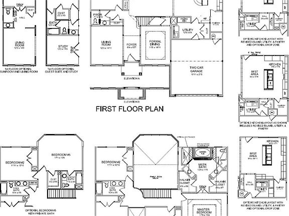 The Hudson is one of the largest plans in the Ball Homes portfolio. This elegant, two story home combines traditional, formal styling with great livability and has a two story foyer with curved balcony overlook that creates a dramatic entry. The first floor has formal living and dining plus a family room with an impressive two-story bay window and optional fireplace flanked by built-in bookshelves. The study can be converted to a first floor guest suite or sunroom option. The kitchen includes a barrel style island, huge walk-in pantry, and separate breakfast area. Customized kitchen cabinet layouts are available. The oversized mudroom/utility room combination includes a separate coat closet and built-in folding area. The second floor has a loft option in place of bedroom #4. The upstairs Master Suite has a spacious separate sitting area and double doors open to the Master Bath which includes dual walk-in closets, dual vanities, and a platform garden tub and oversized shower stall.