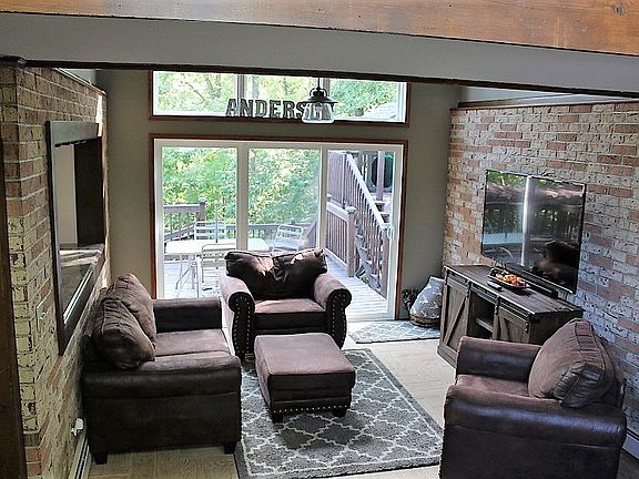 If you are looking for something special, unique and like no other, then you have to see 716 Sunset Hills! Unbelievable privacy with mature trees and plenty of shade. This one of a kind home has cathedral ceilings, two fireplaces, lots of large windows, a balcony over looking the main floor, large family room / rec room on the second level as well as two bedrooms and a full bathroom. The main floor has a bedroom with a full bathroom, living area, hearth room, dinning room and kitchen with all new cabinets, countertops, and stainless steal appliances. There is also new flooring throughout the entire home. The large private outdoor entertaining area is a must see! It features a four level deck, a rock waterfall as well as a custom tree house with a spiral tube slide for the kids.