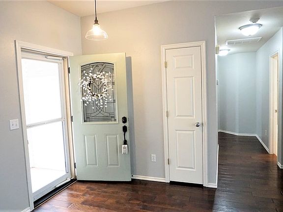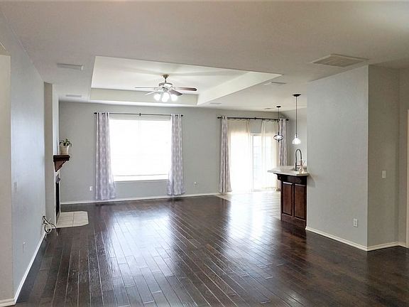This well maintained home is in the Mill Creek subdivision and minutes from shopping, restaurants, entertainment and walking distance to Sante Fe HS. Over 1590 sq ft, this open concept home has 3 spacious bedrooms and 2 full baths. Tray ceiling in main living with a gas grand double fireplace w/easy switch for both master suite and living room! Built in speakers, new light fixtures throughout, beautiful wood floors are a few interior amenities. Roof and exterior paint is @3 years old. Privacy fence and in-ground storm shelter in garage installed 2018. Sellers are including the Samsung stainless steel appliances they purchased in 2018: refrigerator, range, microwave & dishwasher; not warranted. AND washer/dryer! **Carpets to be professionally cleaned upon contract and prior to showing