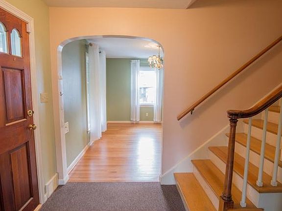 Stately Colonial home with 3 large bedrooms, 1.5 baths, beautiful hardwood floors and a delightful 25x15 sunroom overlooking the peaceful and wooded backyard! Nice foyer to greet you includes a coat closet, the 23x13 living room with a wood burning fireplace has room for the whole family! The dining room sits at the front of the house off the foyer and opens into the large homey kitchen. The kitchen has a center island, tons of cabinet space and a cozy breakfast nook with double windows overlooking the backyard. There is a half bath on the main level, a large pantry and a hallway that wraps all the rooms together for a great floor plan! One car attached garage with entry to the basement or walk out the backdoor and into the sunroom. Nice brick patio area in the back of the house and a lovely, level backyard. Charming details throughout the house!