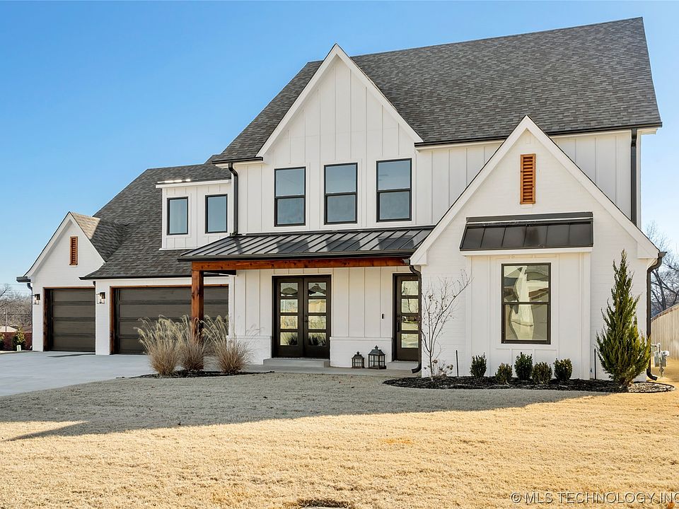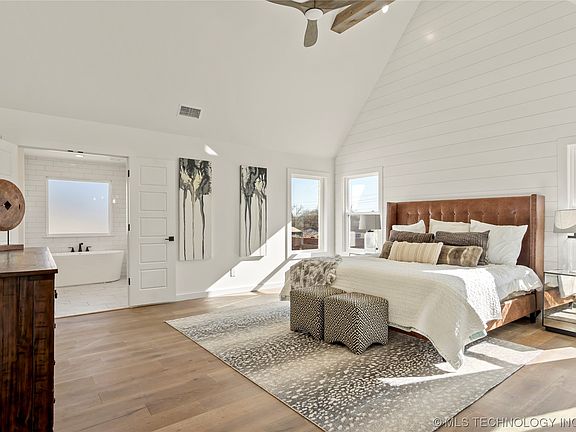 4 Bed | 4.5 Bath | Study | Game room | Media | Master & Study! Finely featured custom plan in a gated Jenks West community, Modern Farm at its finest: apron farmhouse sink, shiplap accents, vaulted living room, clean color palette with warm notes. Primary suite down with private study attached, double vanity, large shower & separate soaking tub. Guests en-suite down, powder room, and dedicated study with built-ins! Vaulted living with accented fireplace. Upstairs, two bedrooms, game room, AND theater or fitness room! Outdoor Fireplace and room to add a pool! Close to Hwy 75, Creek Tpk, Tulsa Hills, easy commute to downtown Tulsa