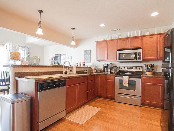 Spacious two story condo, with over 1,500 square feet of finished living area. Three bedrooms and 2 1/2 Baths! The master suite features a trey ceiling, master bath and large walk-in closet. The open main level features a kitchen with a pantry and breakfast bar. Sliding doors in dining room leads to a large patio. The living room includes a corner gas fireplace. Other features include a tile entryway, a 2 car garage and high efficiency furnace. Laundry is conveniently located on the 2nd floor, W/D incl.