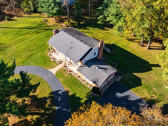 This elegant all-brick Colonial style home offers timeless style w/over 3,300 finished SF. Inside, the formal Living Room and Dining Room feature rich bamboo wood flooring, w/a cozy gas fireplace in the LR. The completely updated kitchen showcases new cabinets, quartz countertops, glass tile backsplash, a large pantry, island seating and top-of-the-line appliances.. including a 5 burner gas stove, double oven and wine fridge. Next to the kitchen is the informal eating area with sliders to a large deck where you can enjoy views of the impressive back yard framed by mature trees and the scenic Gun River. The inviting family room with solid oak floors and lovely brick wood burning fireplace rounds out the main floor. The elegant winding staircase leads to 4 oversized bedrooms , all with stunning hickory wood flooring. The primary suite is a true retreat featuring dual closets, double sinks, tile flooring and walk in shower. Come take a tour, and envision yourself in this beauty NEW ITEMS replaced all within the last month... well / pressure bladder tank / water softener!