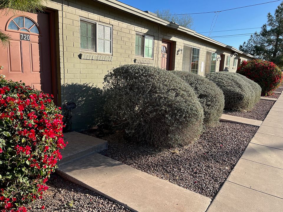 Vintage ground floor five plex has a one bedroom one bath unit for lease. This charming apartment has polished concrete floors, wood blinds, new paint throughout and a new refrigerator. It also has on site laundry facilities and there is off street parking for tenants. It's located one block off Roosevelt in Central Phoenix near downtown close to the arts districts, parks, museums, restaurants, entertainment, ASU, and the I-10. Tenant pays gas and electric. Landlord pays water and trash. Application fee $50 per applicant. No smoking inside the property.