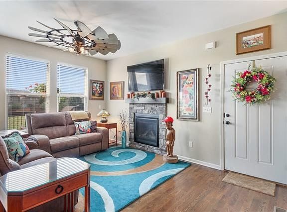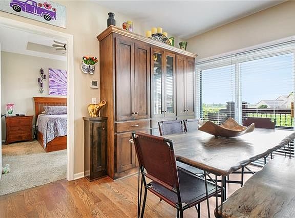 Affordable, Executive living in this beauty. You will love the elegance and quality inside this home. No corner was left untouched. Seller remodeled with additional built-ins, high-end light fixtures and fans, custom window blinds, large composition deck with stairs to the even larger patio below with upgraded landscaping and so much more. 2 roomy bedrooms & 2 baths up, Open kitchen has granite counters, stainless appliances including the fridge, walk in pantry & large island w/breakfast bar. Dining room offers a beautiful custom, built-in wall unit to display and store all those extra goodies. Gas fireplace w/stone front accent this cozy living room. Master suite has big walk-in closet with included washer & dryer & double vanities.tile floors. 2nd bedroom includes the high-end wall unit as shown.. Finished 9ft tall lower level with daylight windows, huge rec room, 3rd bedroom & 3rd bath. Plenty of space to convert part of the rec-room into a 4th bedroom. Lower level also has laundry room with full w/d hook ups. Even with all the finishes the amount of storage in the home is incredible. This seller spared no expense to make this home top notch! On a cul-de-sac lot as well in The Ridge At Waverly Pointe subdivision. Take a tour, you will want to call this beauty home. Easy walking distance to beautiful neighborhood pool & play area. HOA dues include building insurance, exterior maintenance, lawn care, trash & recycling plus the community pool & playground. Award winning Gardner schools.