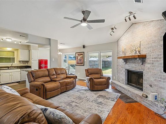 New Windows, New Electrical outlets, All New Lighting, New Fans, Removal of Popcorn Ceiling and Fresh Painting throughout, Three Year Young Roof. The heart of the home is a sun-drenched, open-concept kitchen boasting gleaming granite countertops and slate tile floors that flow seamlessly into the breakfast and living areas. Stay connected with loved ones as the family gathers around the breakfast bar while you prepare meals or cozying up by the fireplace in the living room. Sliding glass doors open onto a covered patio overlooking the expansive, fenced-in backyard, great for grilling, playing games, or simply enjoying the weather. Need extra storage for any reason? You've got it! The garage and backyard shed offer ample space to keep everything organized. This charming 3-bedroom, 2-bathroom home is more than just a place to live. The roof is only three years old and the siding is practically brand new. Convenient location shopping. No Carpet - One more plus. This isn't just a house, Don't miss your chance to make this your home.