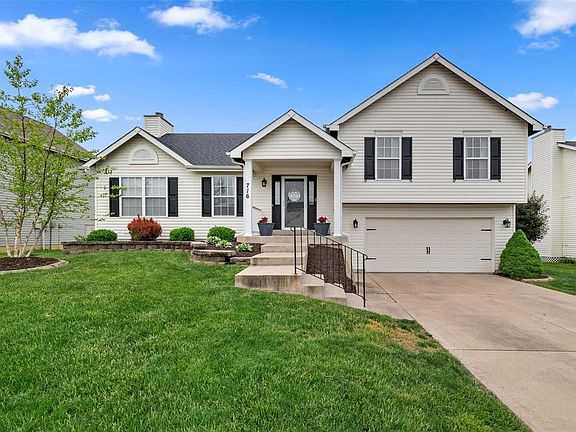 This charming 3 Bed/2 Bath home is perfect for a family looking for a comfortable space to call their own. The Open Floor Plan and Vaulted Ceilings give it a bright & spacious feeling making you feel at home while the Wood-Burning Fireplace adds a cozy atmosphere. The Lower Level has been finished providing a fourth Bedroom, Home Office, or Family Room, and includes an Egress Window (2018). The Professionally Landscaped Level-Fenced backyard and good-sized Patio are perfect for relaxing or playing outdoors. Complete with a large 2-Car Garage. Peace of mind is yours with a Newer Roof (2020), Water Heater (2022), Dishwasher (2022), and Microwave (2022). Refrigerator, Washer & Dryer to stay!  Easy Access to Hwy 70 & 40/61. Close to the GM Wentzville Assembly. Subdivision Pool and Soccer Field!
