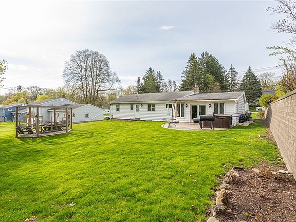 MOVE IN READY RANCH! Situated on a wonderful lot, close to shopping and expressways! Great curb appeal with front stamped concrete patio. Enjoy the hot tub that overlooks the back yard and firepit area! Inside you will love the living room with wood burning fireplace that flows into the formal dining area. Family room with tile flooring is great for entertaining. Brand new floors and counters in the kitchen, with appliances included! 3 bedrooms including primary with attached half bath! HUGE main bath with jetted tub. Updated Furnace, AC and hot water tank. Attached 2 car garage. Make this house, your HOME today! Offers will be considered at 8pm on Monday 5/6/24. Finished Family room is 12x20=240 for a total of 1320 square feet.