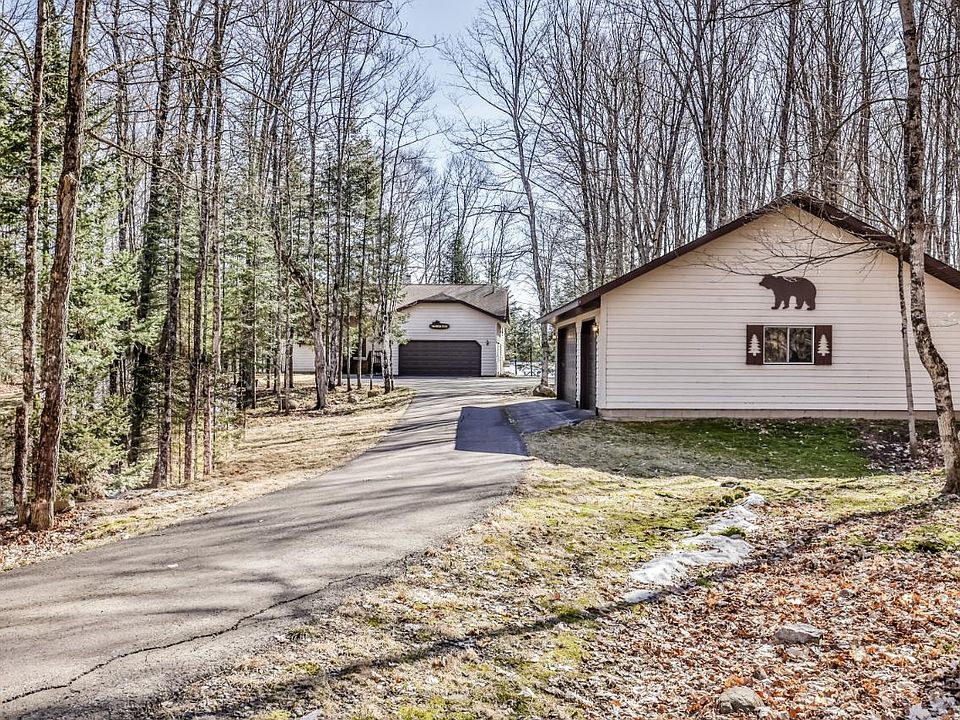 Located on the Southern End of Natural Lakes, this custom built, year-round incredibly maintained home has everything you will ever need to enjoy the Northwoods lifestyle! 3.2 acres of manicured woods and 200 feet of scenic level frontage on full-rec yet private Morton Lake. The fantastic open floor plan boasts a large kitchen, living and dining areas centered with a wood burning fireplace and sliding glass doors leading to a huge covered deck allowing you to enjoy the perfect sunrise views... the large, private, primary suite is set away from the other bedrooms (that share a full bath). Downstairs, there's an enormous finished recreation room with gas fireplace and a third full bath and laundry. Brand new water heater, newer roofs and back-up generator. Have all the "UP-North" toys? There's a 600 square foot attached garage with an elevator, detached 840 square foot garage and closets galore! You don't want to miss this one.