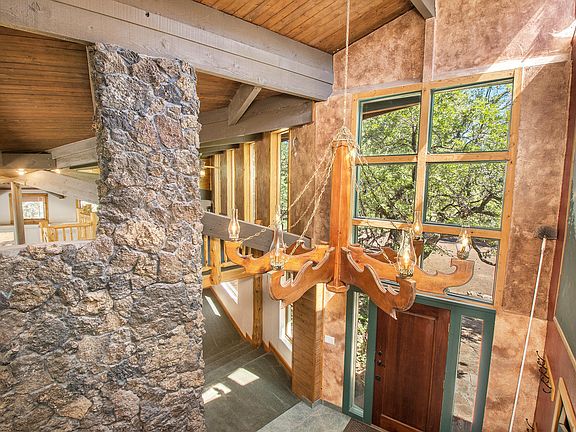 Enjoy Flagstaff living on 5.21 fenced acres full of mature Ponderosa pines and Oak trees. This unique 4 bedroom, 3.5 bath home has vaulted T&G ceilings, 2 pine lodge pole staircases, brand new kitchen with solid quartz counter tops and backsplash, island and KitchenAid stainless steel appliances. Floor to ceiling rock fireplace with efficient pellet stove insert. Large master suite with his and hers closets, picture windows and brick fireplace. Master bath with huge walk-in shower and dual shower heads. Guest rooms are all oversized. Bonus room upstairs leads to the partially covered deck. Tons of windows for natural light and 360 views. 2 sheds with additional covered breezeway. Back access and walking distance to Picture Canyon. Even a zip line for the kids! Owner/Agent