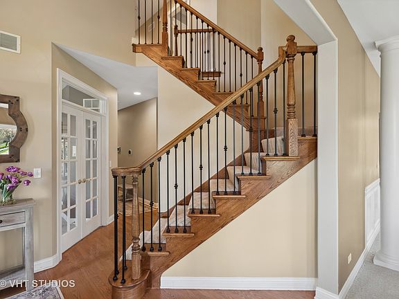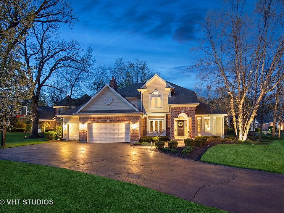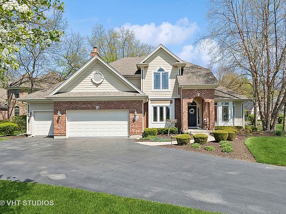 Nestled in the Woods of Turnberry, this stunning home boasts a prime corner location at edge of a quiet cul-de-sac. The property is a testament to meticulous upkeep, inviting you into a world where entertainment and comfort blend seamlessly. The spacious living and dining areas are separated by a columnar entranceway and feature tray light ceilings that add an elegant touch and soft glow. The large kitchen offers granite countertops, luxury cabinets, island seating, and bar area with beverage fridge. Open the sliding doors and enter into the three-season room where you can relax and enjoy panoramic views of the professionally landscaped backyard. The family room is a cozy retreat with its sunken design, masonry fireplace, and built-in bookshelves exuding warmth and sophistication. The first floor also features a large den that provides a versatile space for work or leisure. The elegant staircase with iron spindles leads you to the second floor with 4 large bedrooms all with brand new carpet. The primary suite features a spacious bedroom area, his and hers walk-in closet, and a luxurious bathroom with a soaking tub and walk in shower. The basement has short ceilings (6 1/2 ft) but offers plenty of room for storage and child play. Car enthusiasts or those in need of extra space will value the spacious three-car garage, extra deep with an epoxy floor for durability and ease of maintenance. Situated in a premium location, this home is just across from the prestigious Turnberry Country Club Golf Course. Its proximity to parks, Crystal Lake Beach, the bustling Randall Road corridor, and the Metra station ensures convenience and accessibility, making it an exceptional place to call home.