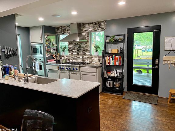USDA eligible if you qualify! 1.5 acres. This is a great house but would also be a wonderful professional office as well. Across the street from Haskew Elem School, and less than a min. to 1-10. House is a real WOW! Inside is like a magazine show. 4/2 with granite, beautiful back splash, huge pantry. Gas stove, top of the line stainless dishwasher, refrigerator and matching freezer, tankless water heater. A glamour master bath you dream about. Huge walk-in slate tiled shower, decorative soaking tub, enormous walk in closet, and natural above counter dual sinks. Built in Murphy bed, built in bunk beds, office off one of the bedrooms. Above ground pool with a wonderful deck, chicken run, storage house, wonderful shade trees, established azaleas, camellias, and fruit trees. Built in gas grill. Irrigated raised flower beds, leaded glass front door, smooth ceiling, computer desk between living room and kitchen. AC new in Sept. 2020. Roof about 10 years old. Garage with automatic opener is being used for workshop with above storage. Circular drive, and an extra storage area for lawn equipment. ***Listing Agent makes no representation to accuracy of sq. ft. Buyer to verify.***
