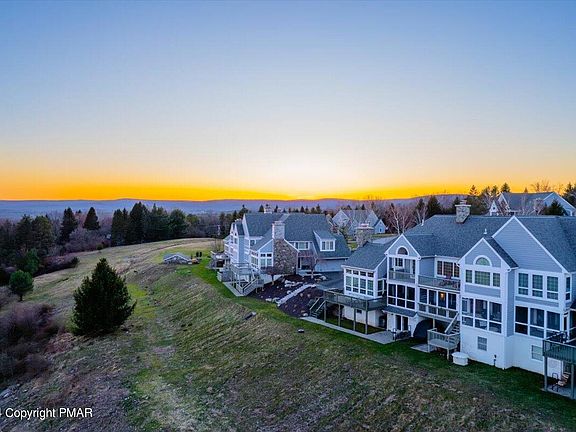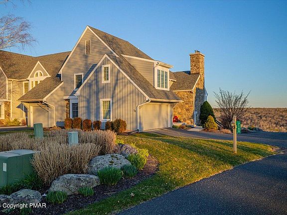 Immaculate Three Bedroom Three Bath Luxury Townhouse located in prestigious Skytop Meadow. This desirable End Unit has incredible Panoramic Mountain Views with Sunsets overlooking Camelback Ski Area that can be viewed from an Oversized Primary Bedroom Suite. Features include; First Floor Bedroom Suite, Full Finished Walk Out Basement, Spacious Two Car Garage, Two Fireplaces, Vaulted Cathedral Ceilings, a Large Outdoor Deck for entertaining, and the convenience of meticulously maintained Landscaping. Located in the Beautiful Pocono Mountains, this Fresh Air Retreat offers a Wide Range of Activities for the Entire Family. Activities include; Golf at Skytop's World Renowned Golf Course, Boating, Hiking, Skiing, Ice Skating, Swimming and MORE! It is not often these very highly sought after End Units with Mountain Views become available. Located just 90 Miles from NYC and Philadelphia. SEE PHOTO and VIRTUAL TOUR! You truly must see this one in person to appreciate, make an appointment today, this one won't last long!