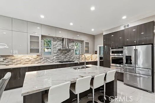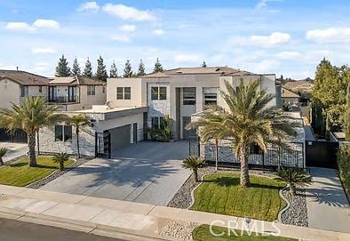 This stunning 5,107-square-foot estate offers 7 spacious bedrooms and 5.75 luxurious bathrooms, blending exceptional comfort with refined design in a breathtaking double-story layout. At its heart, the grand living room showcases soaring ceilings and abundant natural light, setting the tone for the home’s open-concept design that effortlessly connects expansive living areas, ideal for both entertaining and everyday living. The gourmet kitchen is a culinary haven, featuring custom cabinetry, sleek granite countertops, a large island, and a private prep kitchen. Three of the bedrooms feature their private bathrooms, with an additional bedroom on the first floor also enjoying its dedicated bath, offering flexibility and privacy for guests or multi-generational living. The primary suite is a true retreat, complete with a spa-inspired bathroom, dual vanities, a soaking tub, and a generous walk-in closet. Additional highlights include a formal dining room, a dedicated home office, and two cozy family rooms. Modern amenities such as solar panels and a water softener enhance both sustainability and daily comfort. The beautifully landscaped backyard serves as a private oasis with mature palm trees, a custom putting green, and ample space for an outdoor kitchen, dining, and relaxation. This exceptional property includes a four-car garage, extensive storage, a private mechanical gate, and a full security system with exterior cameras for ultimate peace of mind.